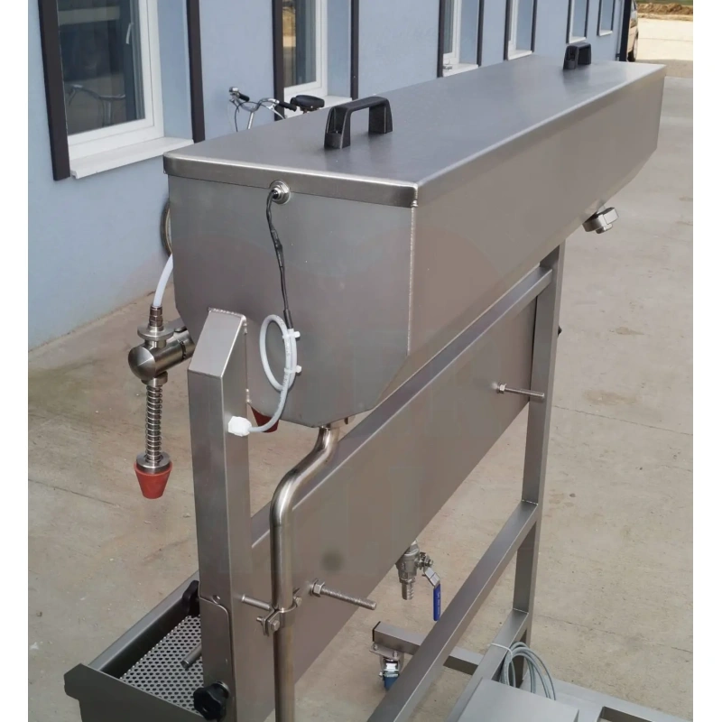 Die hochwertige Abfüllanlage aus Edelstahl ist die ideale Lösung zum Abfüllen von Säften, Sirupen und anderen Flüssigkeiten. Die Anlage ermöglicht das gleichzeitige Befüllen von bis zu 6 Flaschen und gewährleistet einen effizienten und gleichmäßigen Produktionsprozess.
