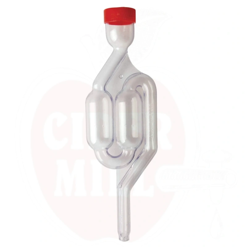 Das Wasser im Siphon schafft eine hermetische Dichtung, die es dem während der Gärung entstehenden Kohlendioxid ermöglicht auszutreten, während das Eindringen von Luft verhindert wird. Dies gewährleistet eine qualitativ hochwertige Gärung Ihres Weins oder Ciders.