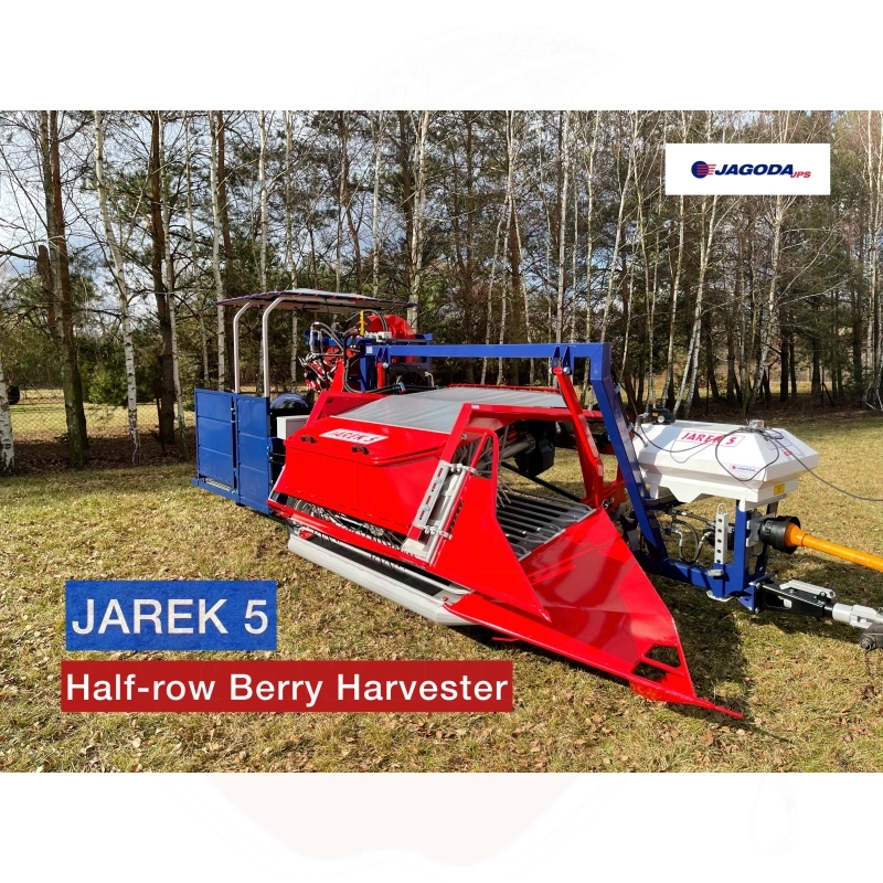 JAREK 5 ist eine verbesserte Halbzeilen-Beerenerntemaschine, ideal für die effiziente Ernte von Johannisbeeren, Stachelbeeren, Himbeeren und anderen Beeren. Das Gerät wurde für den professionellen Einsatz in Beerenplantagen entwickelt.
