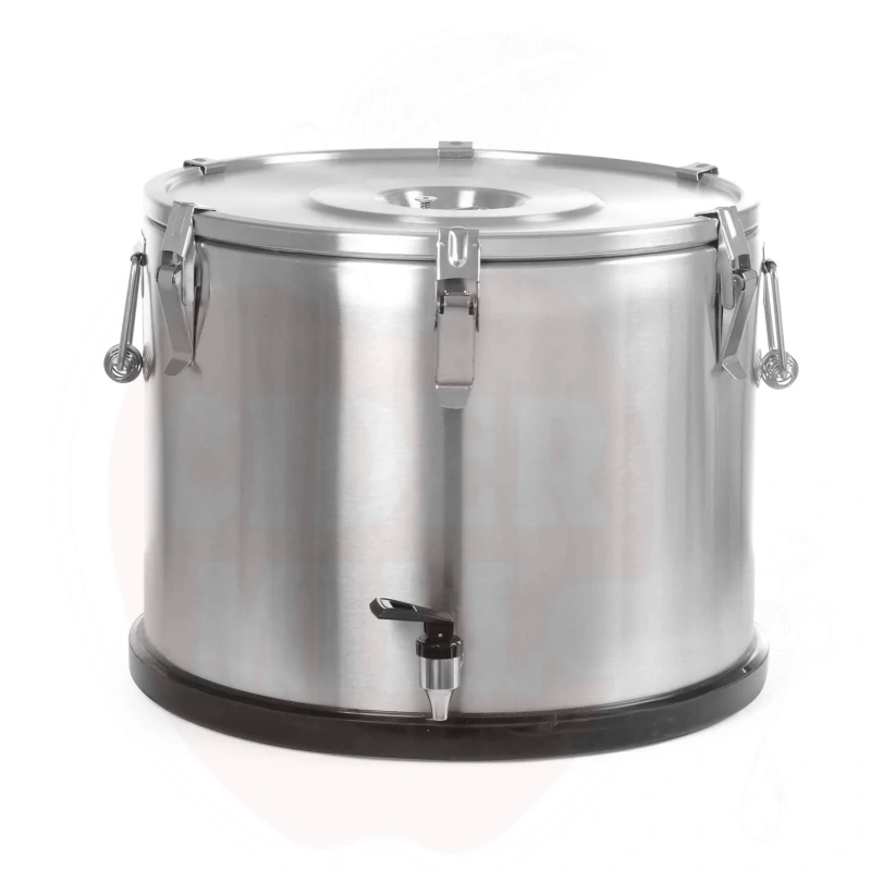 Der professionelle Edelstahl-Zapfhahn wurde speziell für die Saftabfüllung und Dosierung entwickelt. Der Auslauf befindet sich 45 mm vom Behälter entfernt und gewährleistet ein bequemes und präzises Abfüllen.