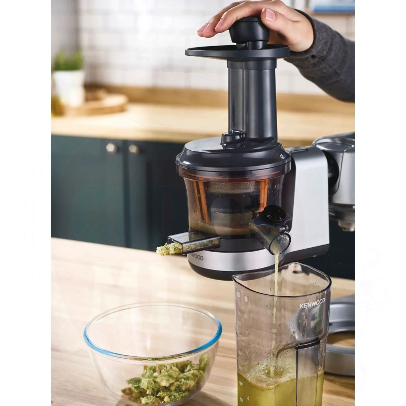 Ein hochwertiger Entsafter, der bequem am Niedriggeschwindigkeitsanschluss der Kenwood Chef Küchenmaschinen-Serie befestigt wird. Dank der speziellen Kaltpresstechnologie bleiben alle wichtigen Vitamine und Mineralstoffe erhalten.