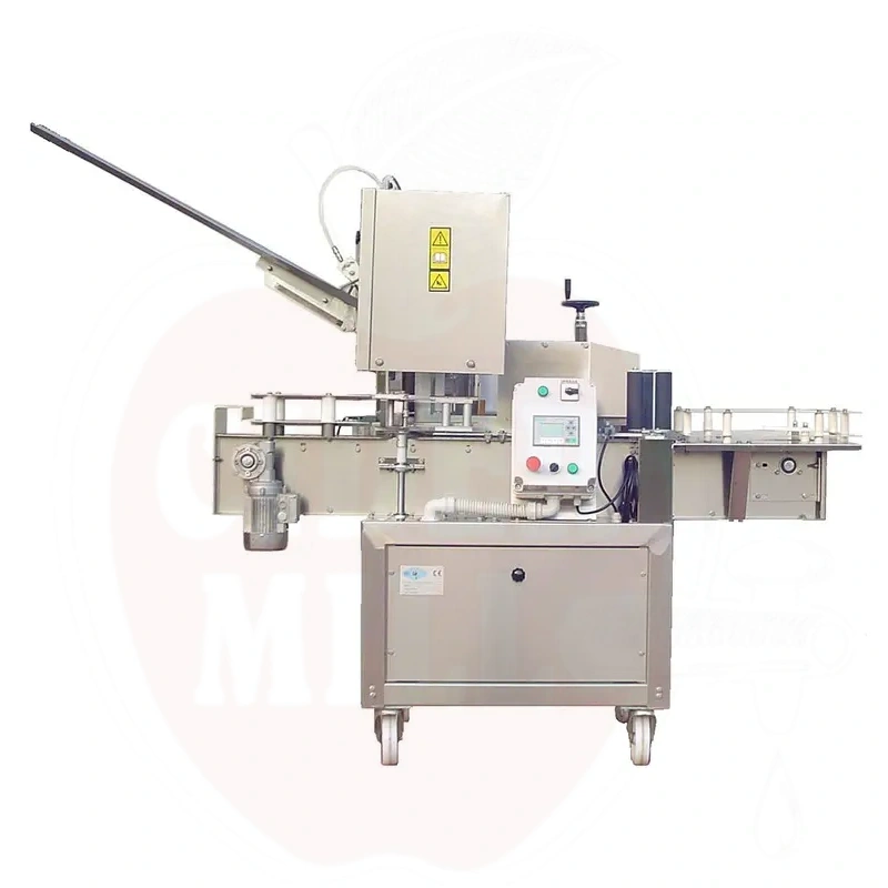 Der moderne Flaschen-Etikettierautomat gewährleistet eine präzise Kennzeichnung und professionelles Aussehen Ihrer Produkte. Das Gerät bringt sowohl Vorder- als auch Rückenetiketten an und versieht die Flasche mit einer hochwertigen Schrumpfkapsel.