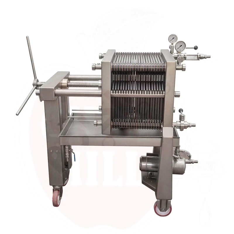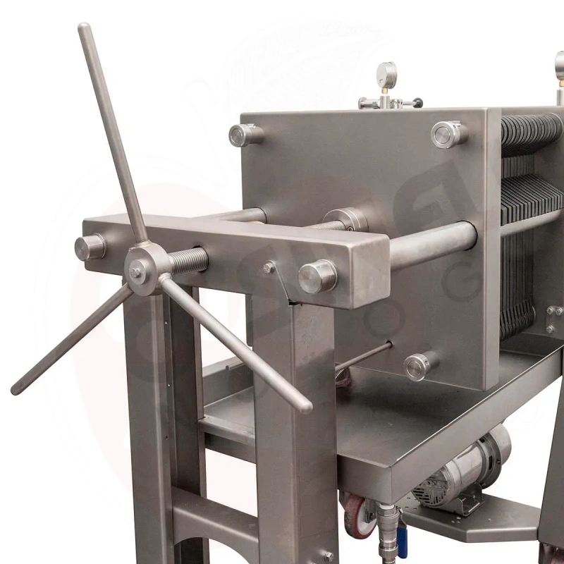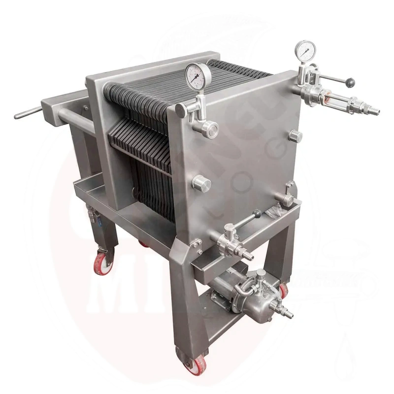 Stichwörter: Industrielle Filteranlage, Weinfiltration, Ölfiltration, Likörreinigung, Filterplatten 40x40, Flüssigkeitsfiltration, Filtergerät, Filterplatten