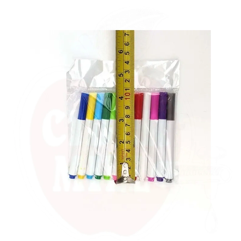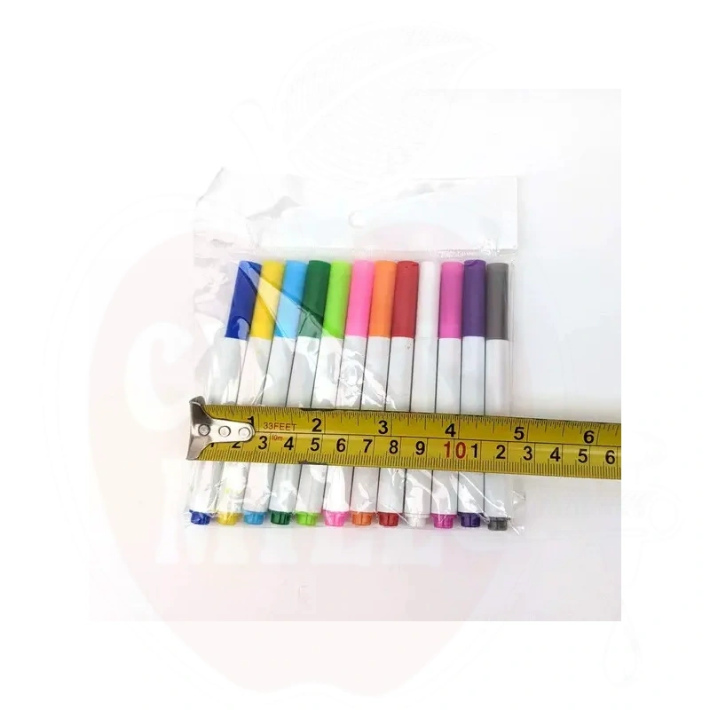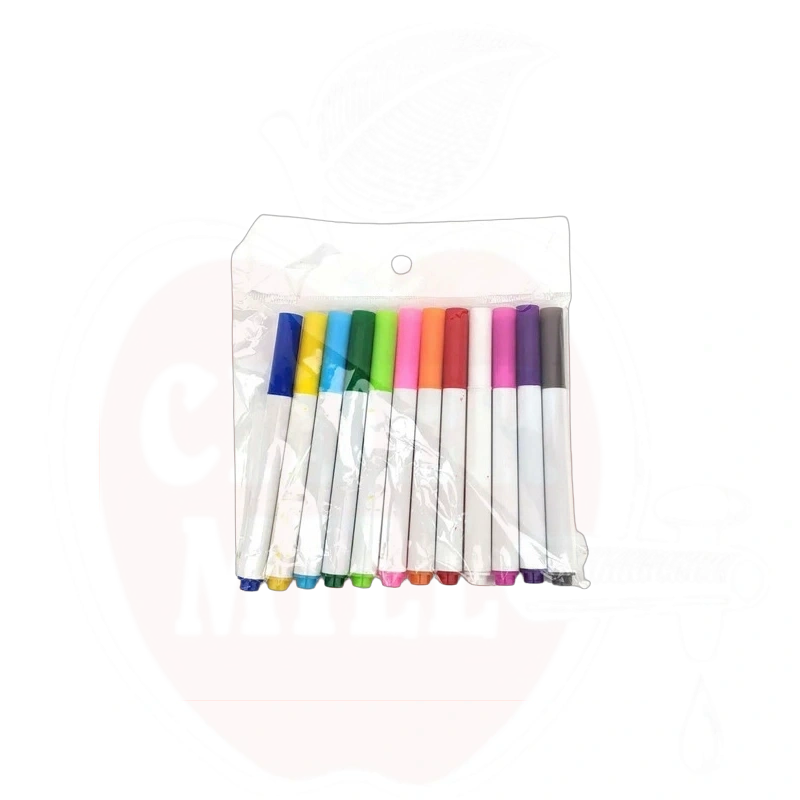 Das Set enthält 12 Mini-Flüssigkreidemarker, die wasserbasierte Pigmenttinte verwenden und es ermöglichen, Fenster, Glas, Spiegel, Kunststoff und Metalloberflächen einfach zu markieren. Die Tinte wird durch Regen nicht abgewaschen, lässt sich aber leicht mit einem feuchten Tuch entfernen. Für ein dauerhafteres Ergebnis können diese Marker auch auf Tafeln verwendet werden.