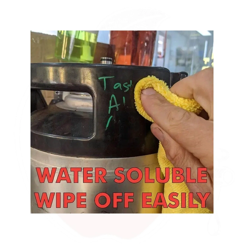 Diese wasserbasierten Flüssigkreidemarker sind äußerst praktisch. Die Marker mit feiner Spitze eignen sich ideal für detaillierte Arbeiten an Bierzapfhähnen. Auch hervorragend zum Beschriften von Bierfässern und Gärbehältern geeignet. Die Tinte lässt sich leicht mit einem feuchten Tuch abwischen und bietet lebendige Kontrastfarben.