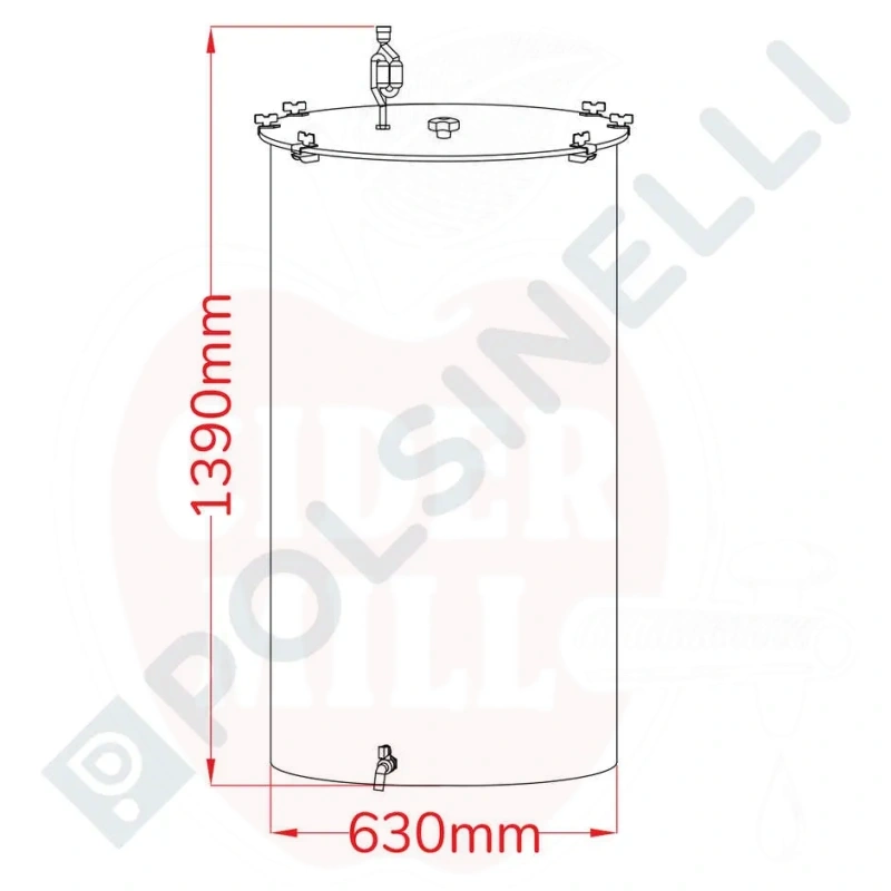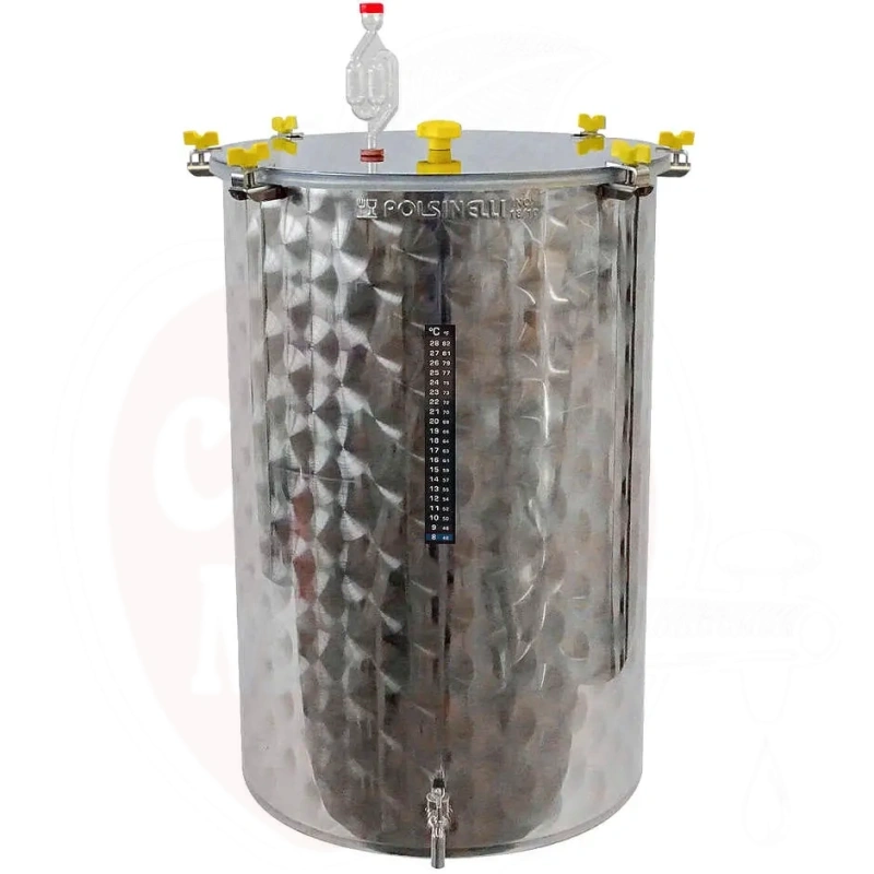 Professioneller Gärbehälter aus AISI 304 (18/10) Edelstahl mit einem Fassungsvermögen von 300 Litern. Konzipiert für die Aufstellung auf ebenen Flächen, ideal für die Herstellung von Weinen und anderen Getränken.