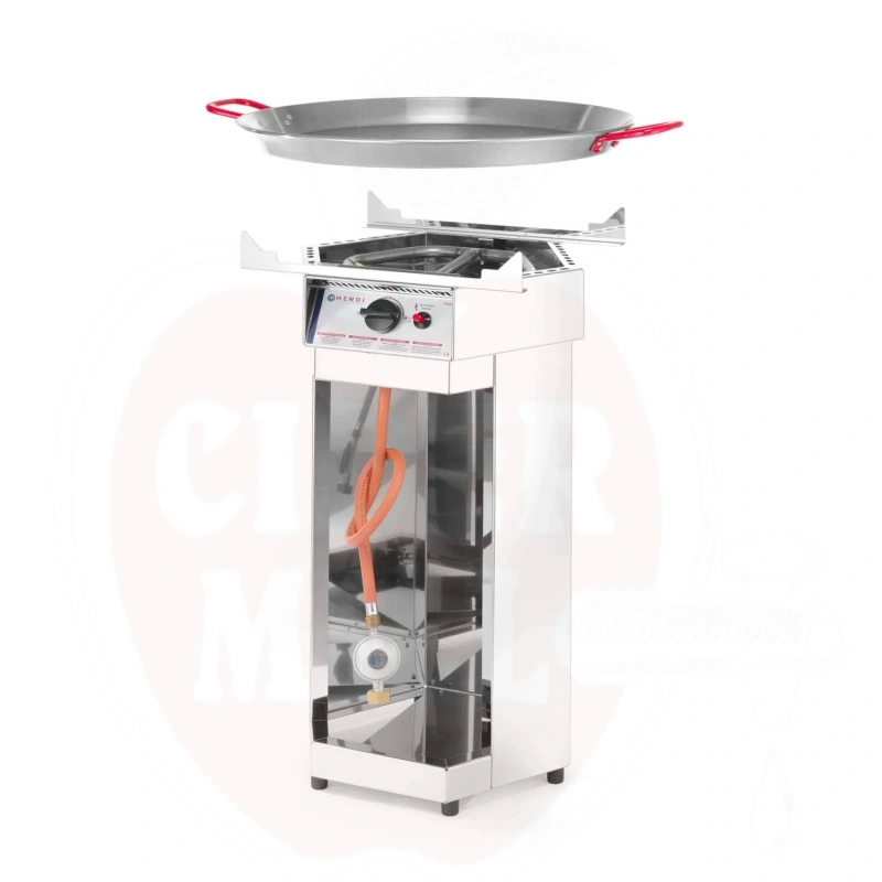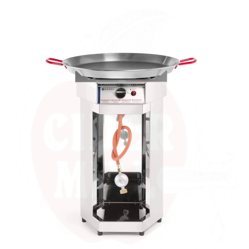 Der robuste Dönergrill ist aus hochwertigem Edelstahl gefertigt und mit einer 600mm großen Walzstahlpfanne ausgestattet. Das Gerät ist die ideale Lösung für die Zubereitung von Schawarma, Gyros und Paella bei Großveranstaltungen.