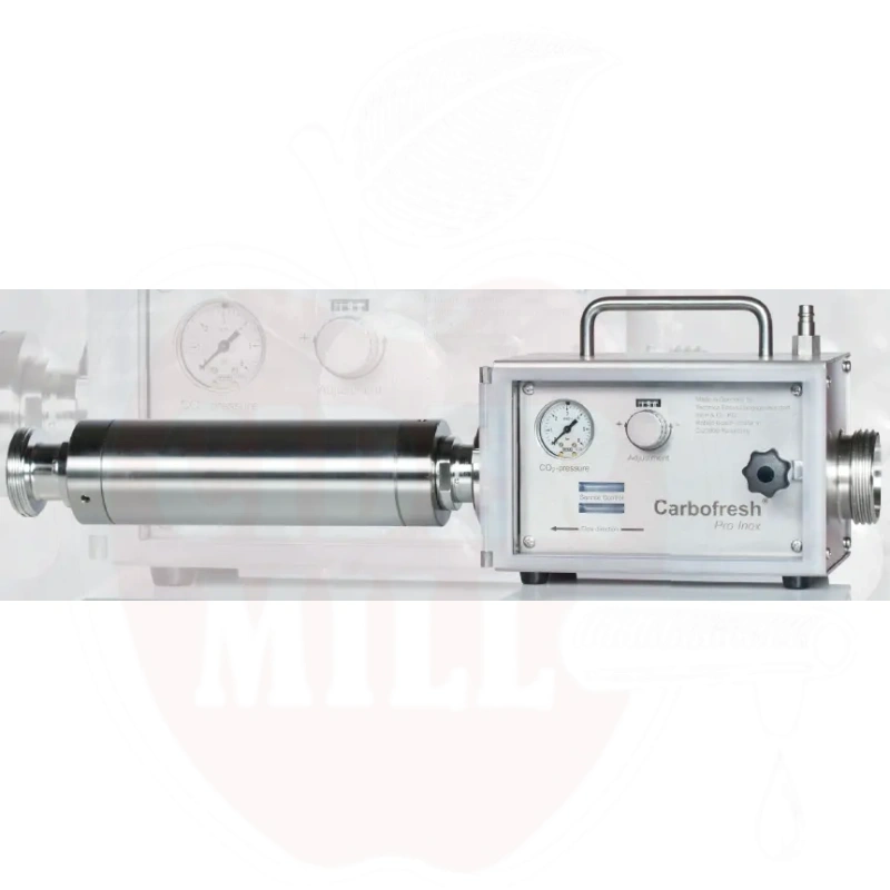 Professionelle Karbonisierungsanlage für die Verarbeitung von Cidre, Bier, Wein und Wasser, die eine präzise CO2-Zugabe von bis zu 6 Gramm pro Liter ermöglicht. Der dreistufige Karbonisierungsprozess gewährleistet ein gleichmäßiges und qualitativ hochwertiges Ergebnis.