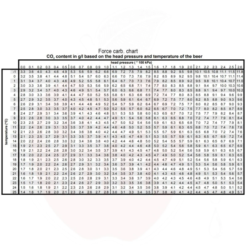 - CO2-Druck: 2,6 bar (ergibt 9,9g/l)
