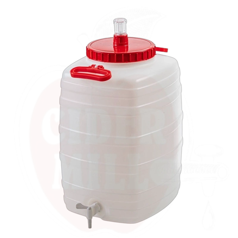 Gebrauchsanweisung: Desinfizieren Sie den Behälter vor dem ersten Gebrauch gründlich. Befüllen Sie entsprechend dem Rezept und lassen Sie Raum für Gärschaum. Überwachen Sie die Fermentationstemperatur sorgfältig, da große Flüssigkeitsmengen langsamer auf Temperaturänderungen reagieren.