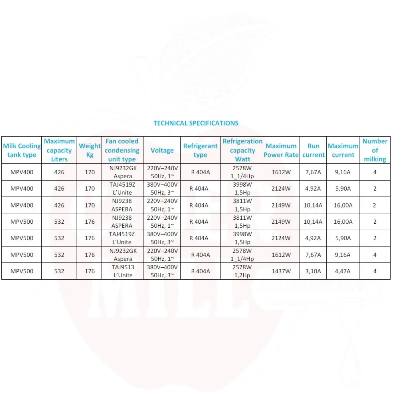 Im Lieferumfang enthalten sind ein präziser Messstab und eine Berechnungstabelle zur Milchmengenbestimmung. Auch erhältlich ist ein leistungsstärkeres Modell mit 250l minimaler Füllmenge und 3811W Kühlleistung.