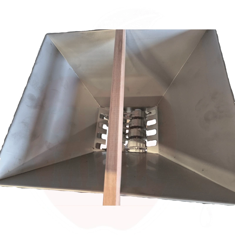 Die Konstruktion der Obstmühle ermöglicht eine einfache Reinigung und Wartung. Die Metallfüße sind leicht abnehmbar, was den Transport und die Lagerung des Geräts vereinfacht.