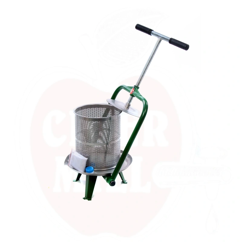 Hochwertige Apfelpresse für die Kleinproduktion, ausgestattet mit einem Edelstahl-Presskorb und Saftauffangwanne. Die ideale Lösung für den Hausgarten oder kleinere Höfe.