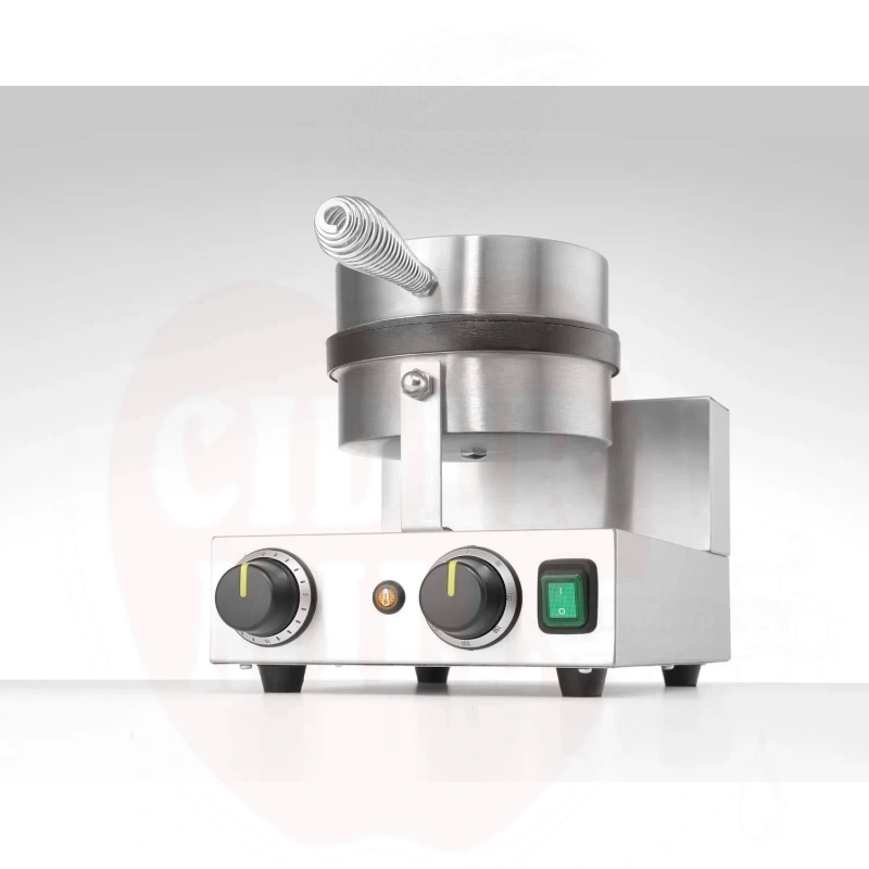 Hochwertiges rundes Waffeleisen aus robustem Aluminiumguss. Die Oberfläche des Geräts ist mit einer speziellen titaninfundierten Beschichtung behandelt, die ein einfaches Lösen der Waffeln und eine lange Lebensdauer gewährleistet.
