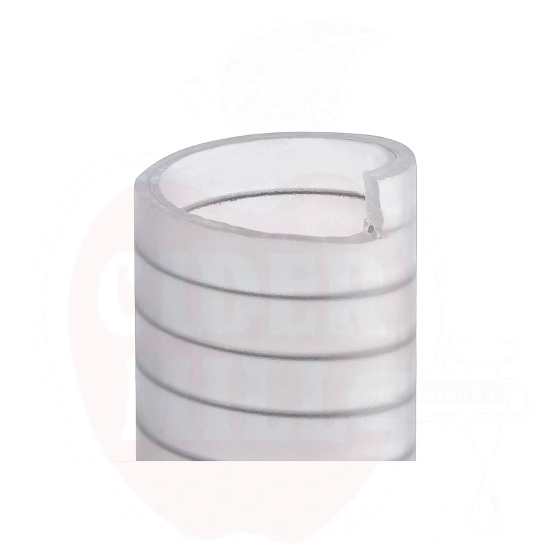 Hochwertiger transparenter TPE-S Gummischlauch für die Lebensmittelindustrie, verstärkt mit einer AISI 302 Edelstahlspirale. Speziell entwickelt für den sicheren Transport von Lebensmitteln, Kosmetik und pharmazeutischen Produkten.