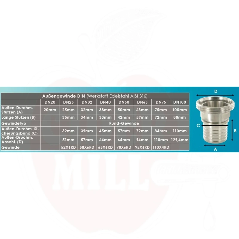 Schlauchanschluss DIN11851 DN25 für 25mm Schlauch Außengewinde