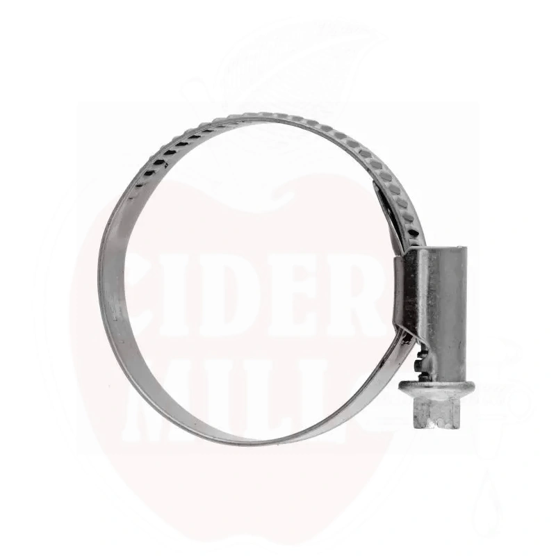Die hochwertige Edelstahl-Schlauchschelle gewährleistet eine sichere und dauerhafte Verbindung beim Flüssigkeitstransport. Hergestellt aus A2 (AISI 304) Edelstahl, ideal geeignet für die Anforderungen der Lebensmittelindustrie und Saftproduktion.