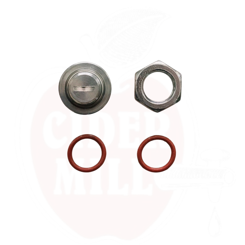Hochwertiger Verschlussstopfen aus 304 Edelstahl für Bierbrauanlagen. Das Set enthält einen Stopfen mit zwei O-Ringen (einer zum Einbau, einer als Ersatz), die perfekte Dichtigkeit gewährleisten.