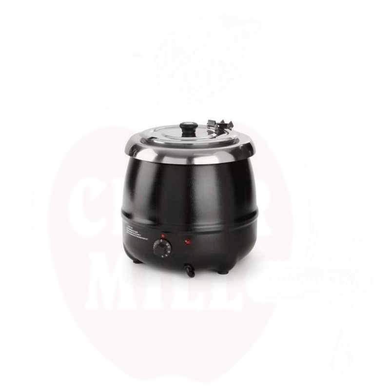 Der Suppentopf ist mit einem hochwertigen Temperaturregler ausgestattet, der eine gleichmäßige Warmhaltung der Speisen gewährleistet. Der Innenbehälter und Deckel aus Edelstahl machen die Reinigung einfach und garantieren eine lange Lebensdauer. Das schwarze Stahlgehäuse ist elegant und kratzfest.