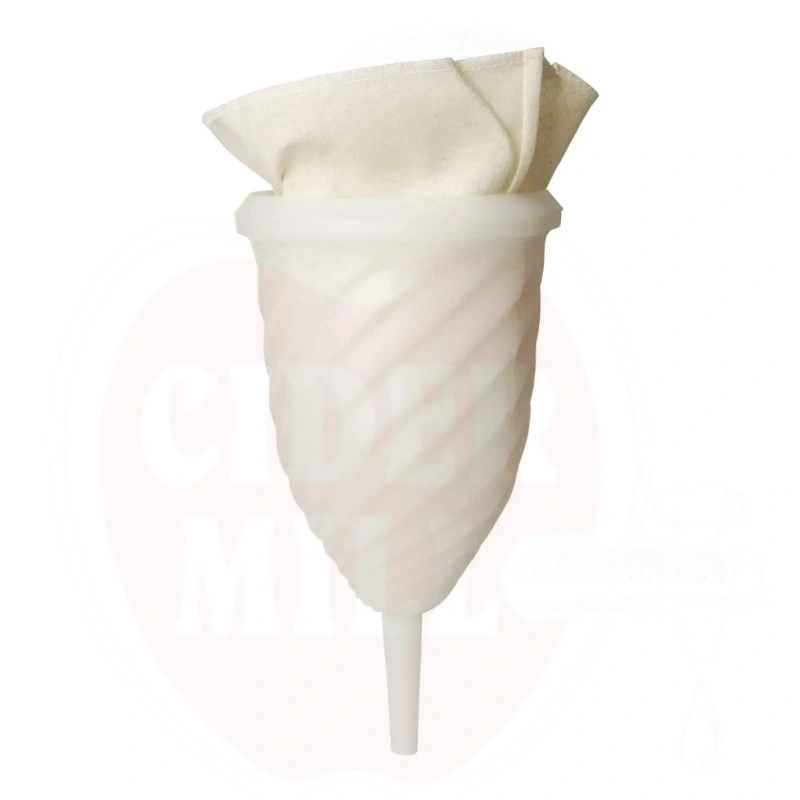 Hochwertiger halbtransparenter Kunststofftrichter zur Saftfilterung mit spiralförmigem Design für effizientes Arbeiten. Der Trichter hat einen Durchmesser von 15 cm und ist speziell für die sichere Flaschenpositionierung während des Pressens optimiert.
