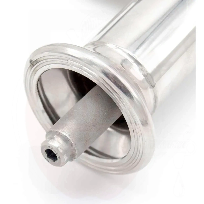 Verwendung: Wird zur Sauerstoffanreicherung von Wein oder zur Karbonisierung von Bier und anderen Flüssigkeiten während der Produktion oder beim Umfüllen verwendet. Die poröse Kerze im Edelstahlrohr ermöglicht die Gaseinspritzung (Sauerstoff oder CO₂) in die Flüssigkeit über ein Ventil und einen Schlauchhalter.
