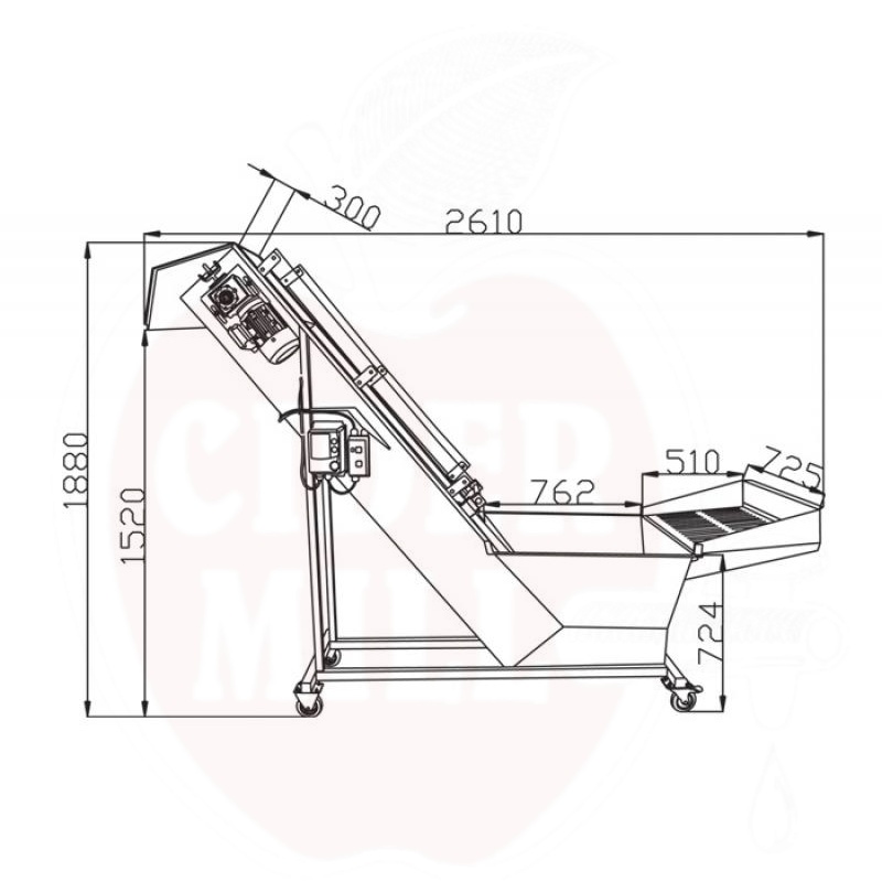Technische Informationen: Leistung: 3000 kg/h, Strombedarf: 0,75 kW, 400 V, 16 A, Material: Wnr. 1.4301, Edelstahl AISI 304, Gewicht: 135 kg, Badwasservolumen: /280 L, Waschwasserversorgung: 20-100 L/h (je nach Einstellung), Wasseranschluss: ¾" schnell Anschluss, IP65-zertifizierte Elektronik, stufenlos einstellbare Bandgeschwindigkeit, Abmessungen 2800 x 2100 x 750 mm