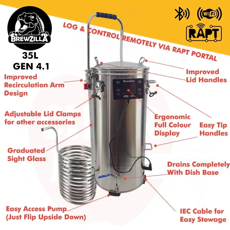 Brauanlage 35L BrewZilla Gen 4.1 mit Pumpe 1900/500W 220-240V