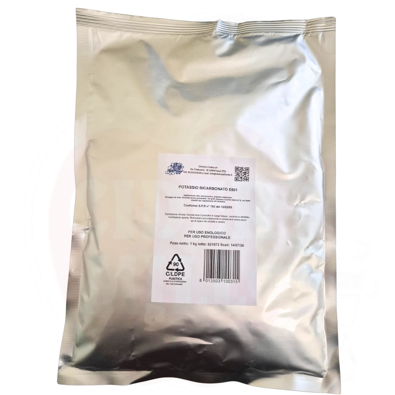 Potassium bicarbonate reacts with acidic compounds in wine, ensuring optimal acidity levels and improving wine's taste properties. The product is widely recognized among professional winemakers.