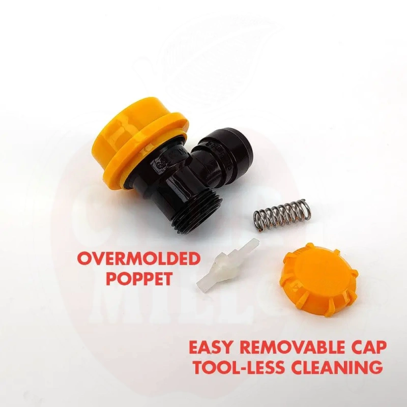 Features: Made from highly chemical resistant materials with stainless springs and ball bearings - no cheap ABS plastics here - this baby is extremely resistant to commonly used chemicals such as phosphoric based sanitisers and caustics. The incredibly small form factor allows for easy stacking of kegs. The new cap design ensures a pressure seal with just hand tightening and it can be completely taken apart for cleaning with no tools required - no need to ever have blocked poppets again when it is this easy to disassemble and clean.