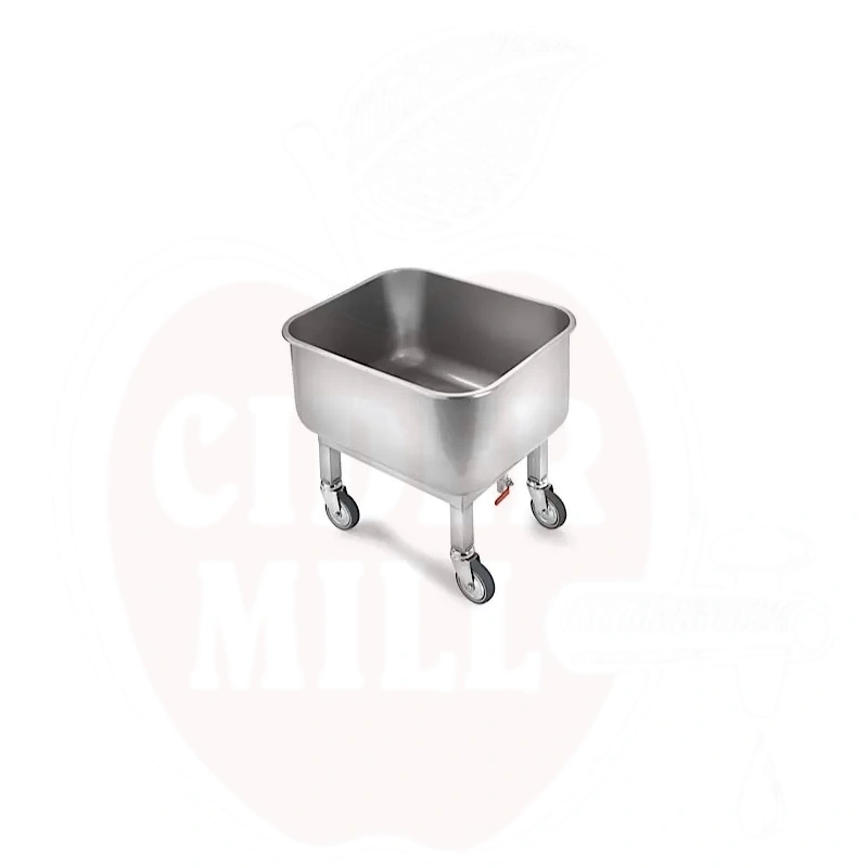 High-quality stainless steel tank is equipped with durable wheels, making it easily movable. The tank is an ideal solution for handling berries, fruits, and juice.