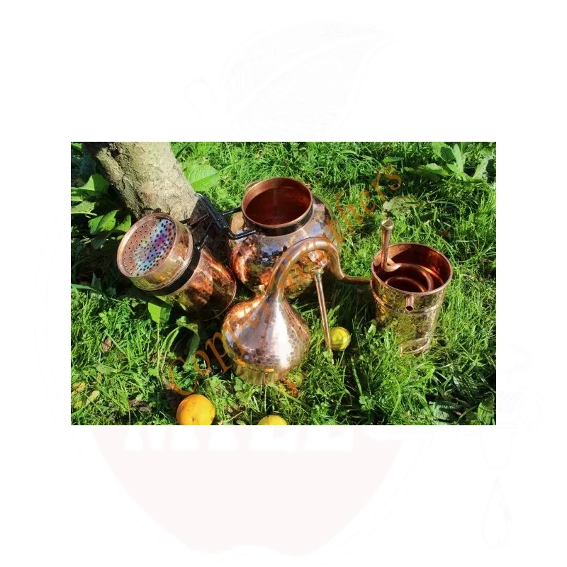 We present you a high-quality handcrafted copper still from a Portuguese master craftsman. This Premium Copper Flip Top Column Alembic is made from durable 1.3mm thick copper, offering a top-tier distillation experience.