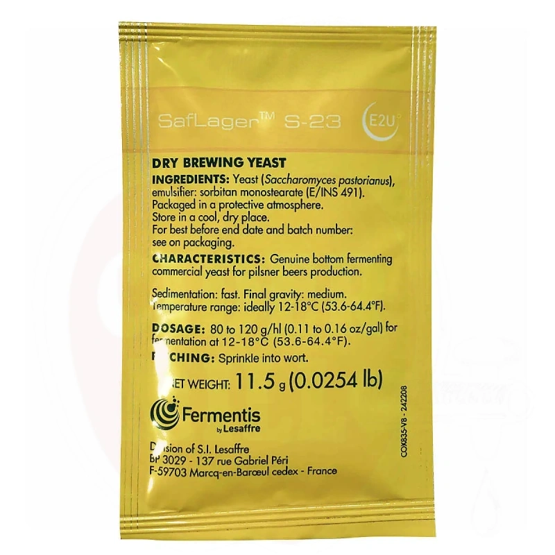 Saflager S-23 is a Saccharomyces Cerevisiae beer yeast strain characterised by low fermentation. Originating in Berlin, Saflager S-23 dry yeast, known by the code RH, is particularly appreciated for its quality and slightly fruity aroma, making it ideal for the production of lager and pilsner beers. Characterised by a low attenuation profile, Saflager S-23 yeast is widely used in Eastern Europe, where it is used to give beer a persistent aftertaste and good density.