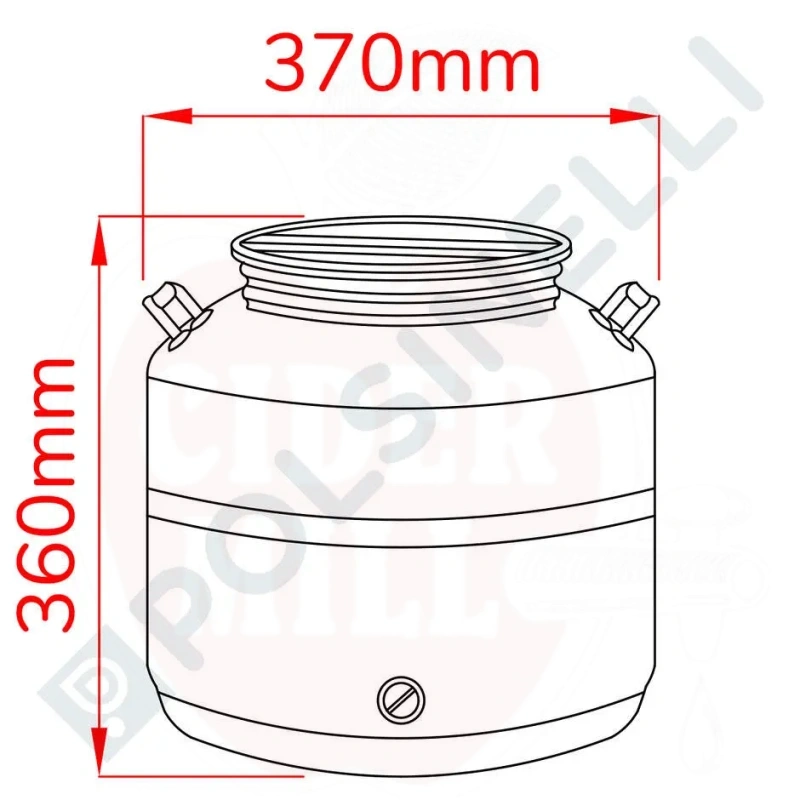 Technical data: Capacity: 30L. Weight: 4.5kg. Height: 360mm. Bottom diameter: 360mm. Opening diameter: 230mm. Tap preparation: 1/2".