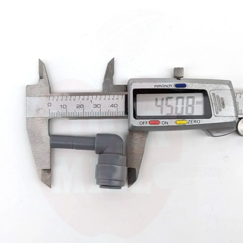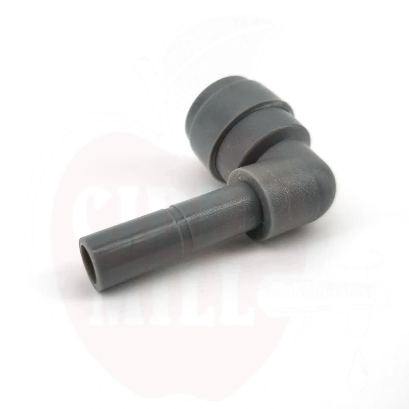 Technical data: Maximum working pressure: 100 psi (6.9 bar). Material: EPDM (Ethylene Propylene Rubber) — excellent chemical resistance to ozone, oils, alkaline and acid compounds, water, alcohol, ketones and beverages. BPA-free, food-grade certified. Connection: 8mm Female × 8mm Male Elbow. Compatible hose OD: 8mm.