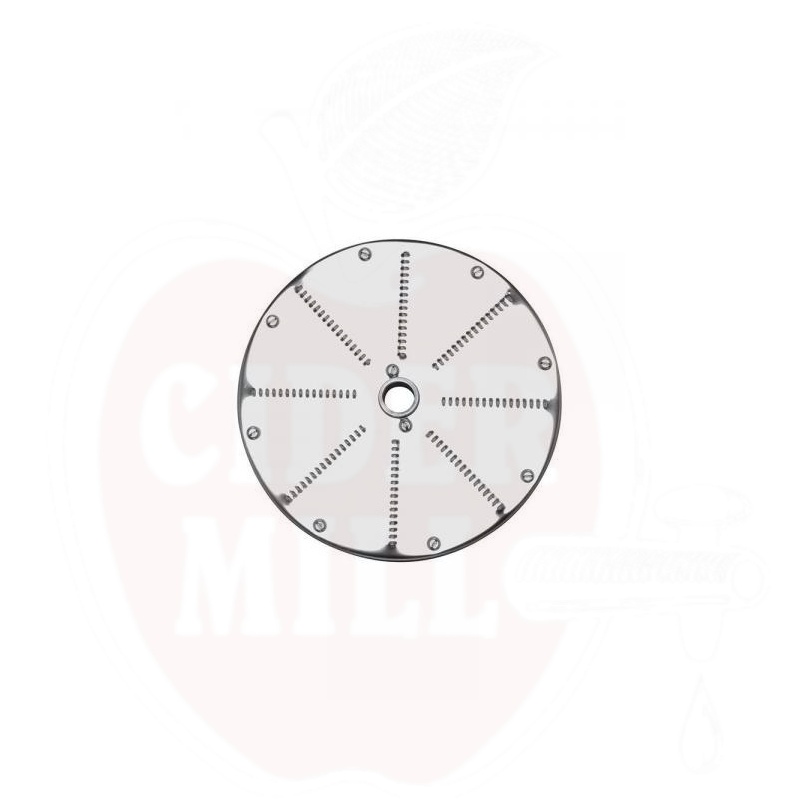 High-quality stainless steel cutting disc specially designed for efficient grating of fruits and vegetables at industrial level. The disc is ideal for grinding apples, carrots, and other raw materials in juice presses and industrial equipment.