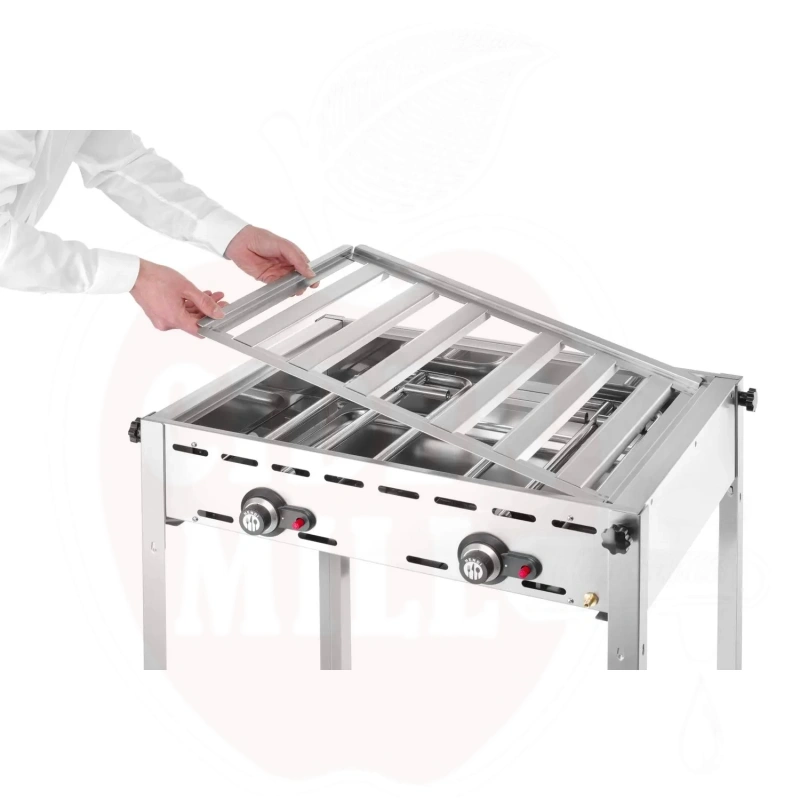 Green Fire with 2 burners, HENDI, Profi Line, Enamelled cast iron Gastronorm 1/1 griddle and grid, 11,6kW, 740x615x(H)825mm