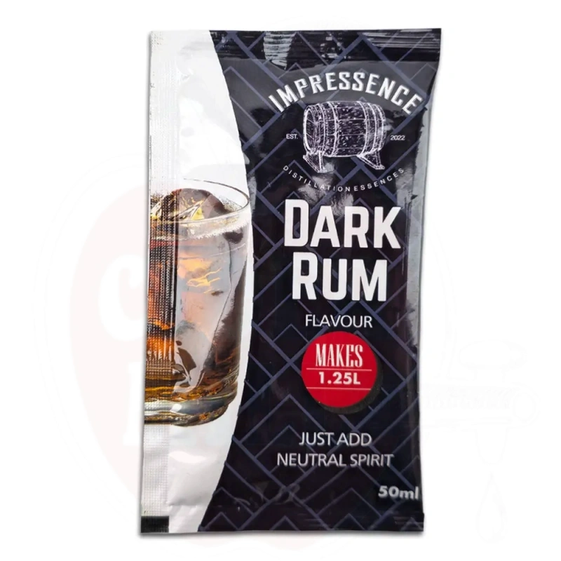 Usage: Add entire 50mL contents of Impressence - Dark Rum Spirit Flavour sachet to a vessel and top up to 1.25L with 40% ABV alcohol. Rinse any remaining flavouring from the sachet with some of the alcohol. For best results we recommend using neutral, high quality alcohol. To improve the smoothness and complexity of the flavors we would first recommend leaving the spirit for at least 24hrs before drinking. We also recommend aging this product on oak chips, in an oak barrel or some other type of oak. A small amount of oak aging makes a huge difference to the complexity and smoothness of the final spirit.