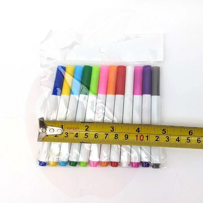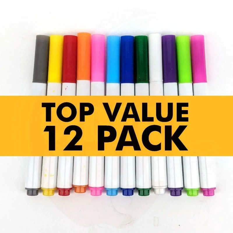 Features: Set of 12 mini liquid chalk markers with 1.5 mm bullet tip. Utilise water-based pigment ink for marking on windows, glass, mirrors, plastic and metal surfaces. Vibrant and opaque white ink provides excellent contrast. Won't wash off in rain but easily removable with a damp cloth on non-porous surfaces. Suitable for both indoor and outdoor use.