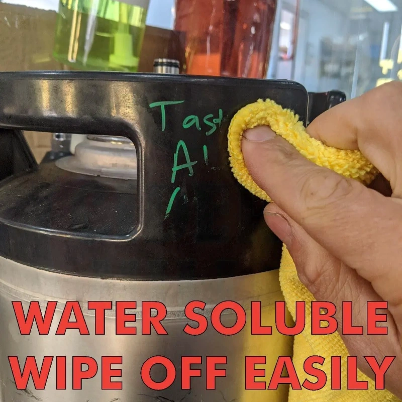 Usage: These water-based liquid ink chalk markers are ideal for detailed work on beer tap handles, labelling kegs and fermentation tanks, and creating signage on various non-porous surfaces.