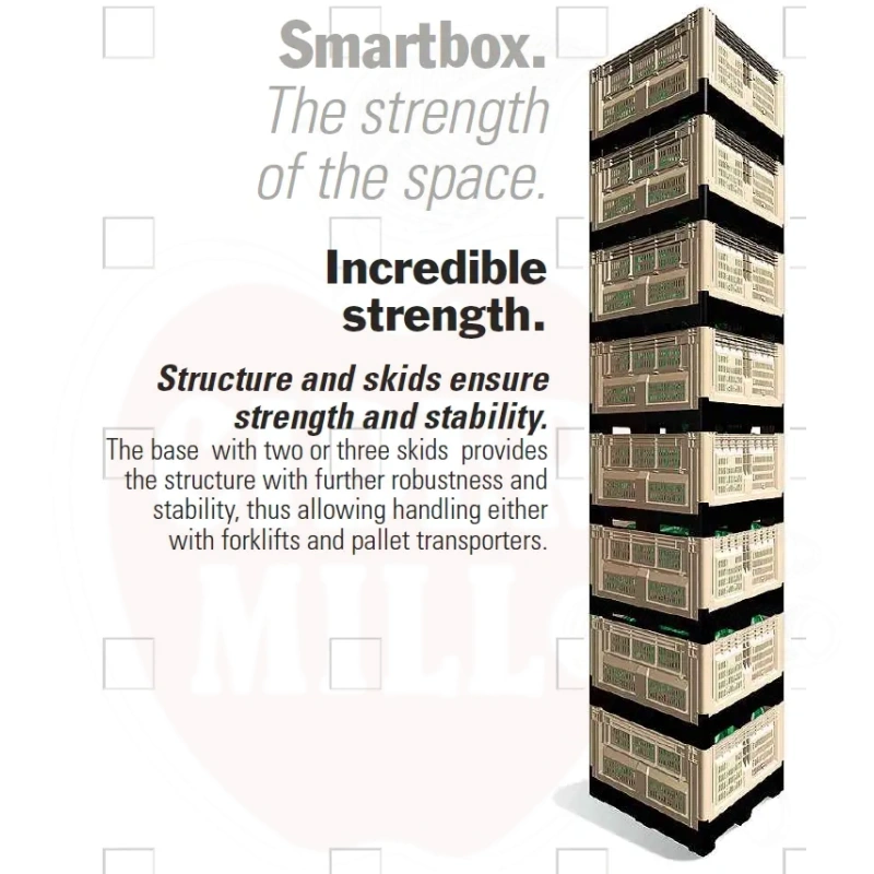Keywords: transport box, collapsible box, food box, berry transport box, fruit transport box, HD-PE box, agricultural box, 565L box
