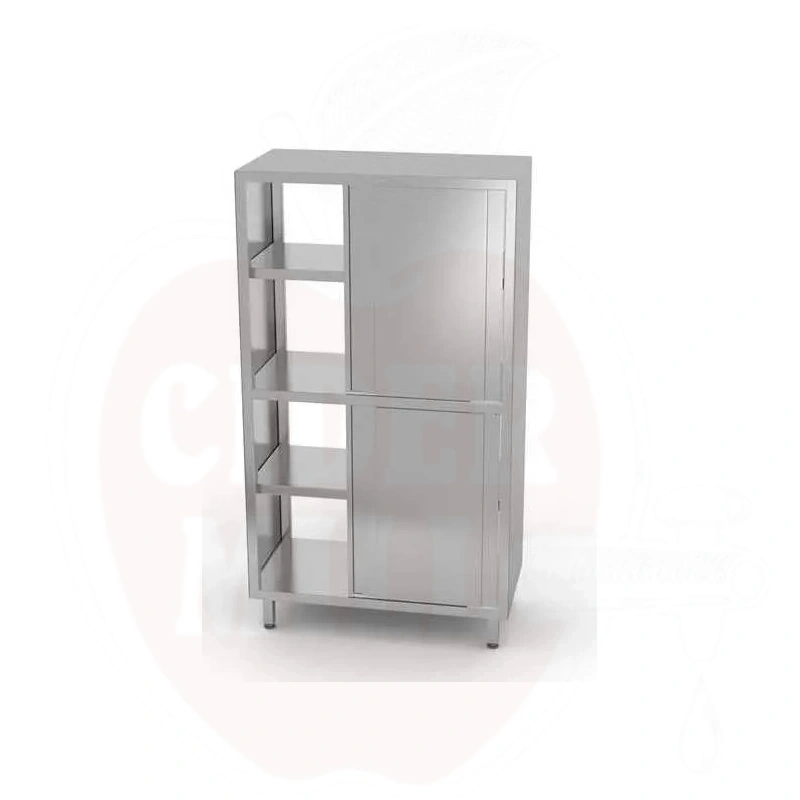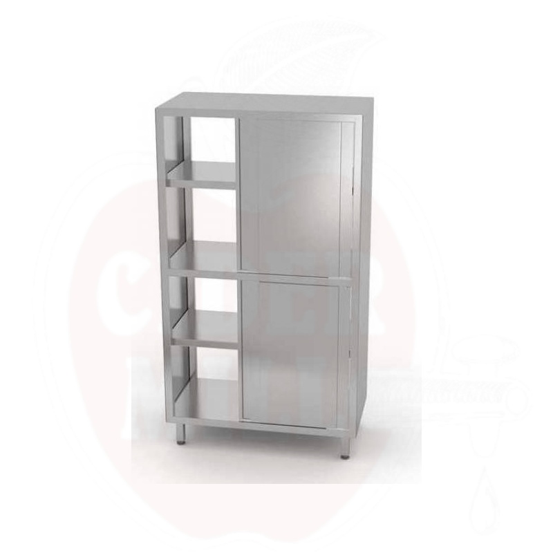 Practical stainless steel kitchen cabinet AISI 430 for industrial use. The cabinet is accessible from both sides thanks to two doors on opposite sides. Made of durable and hygienic stainless steel.