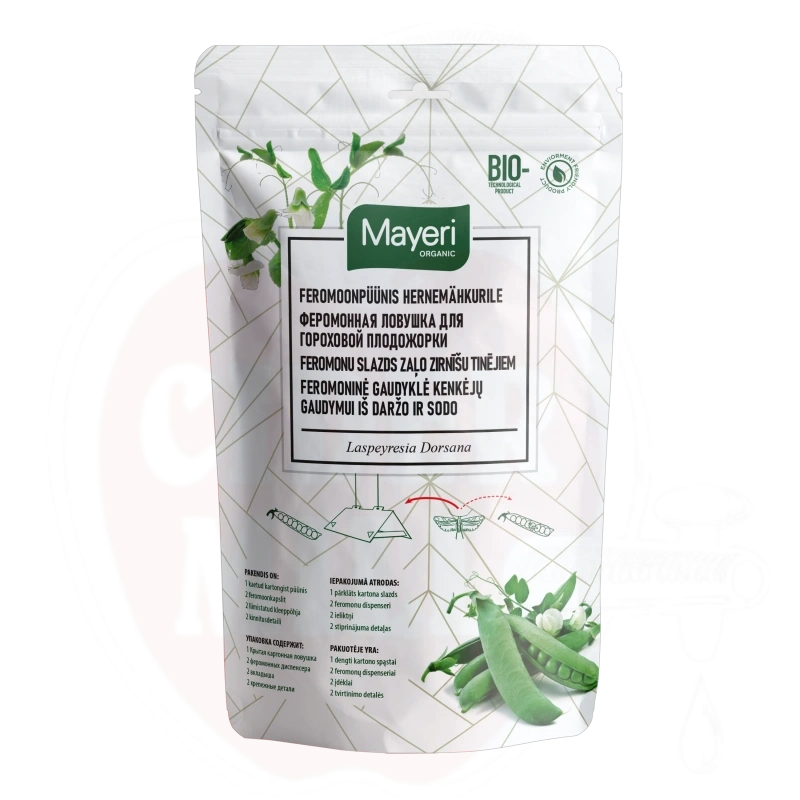 Keywords: pheromone trap, pea moth, organic garden, pea pests, pest control, ecological plant protection, pheromone capsule, pea growing