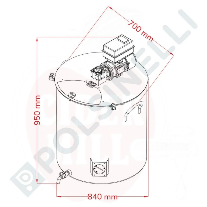 Properties: Constructed from 18/10 stainless steel (AISI 304) for maximum durability and hygiene. The thick bottom maintains heat, while a gear motor with inverter provides adjustable rotation speed (6–42 rpm) and reversible motion, all controlled by a digital keypad panel. It features a professional analog thermometer for temperature monitoring, a thick stainless steel lid with hooks, a 1" stainless steel tap for easy drainage, durable stainless steel handles, and an integrated guard for the thermometer. Not suitable for induction heating systems.