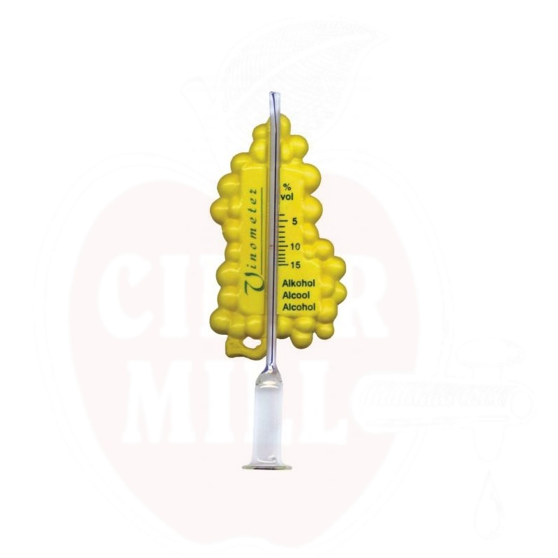 Professional alcohol meter for accurate measurement of alcohol content in fermented wines. Decorative device with grape design suitable for every winemaker.
