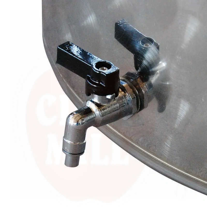 Features: AISI 304 stainless steel construction with embossed flower pattern exterior. Concave welded bottom for easy cleaning. Complete standard equipment includes 1/2" welded bushing, chrome-plated brass tap, stainless steel air float with chamber, pump with analogue pressure gauge, recovery cable, and 1"1/4 vent valve.