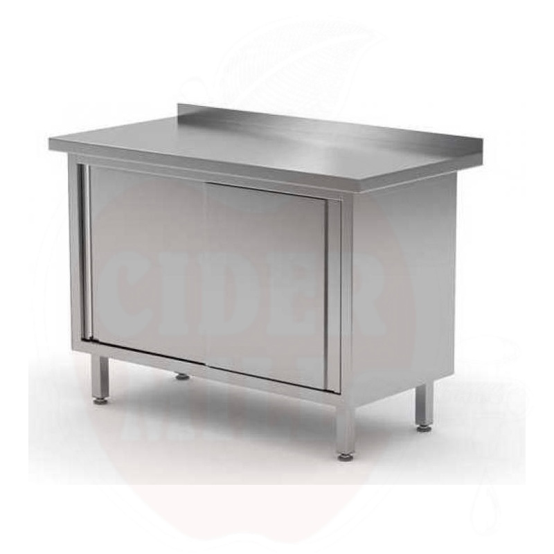 Keywords: stainless steel worktable, AISI 430 worktable, adjustable work surface, industrial kitchen furniture, stainless steel kitchen furniture, professional worktable, lockable cabinet table, worktable with sliding door