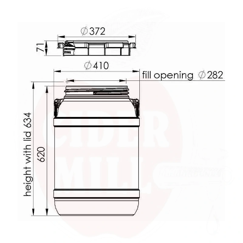 68 L drum with lid, PE, white red