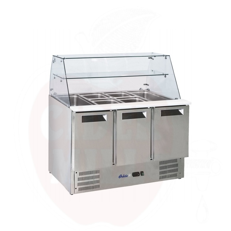 3-door refrigerated salad counter with glass superstructure, Arktic, 3-door counter with glass superstructure, 1365x695x(H)1270mm