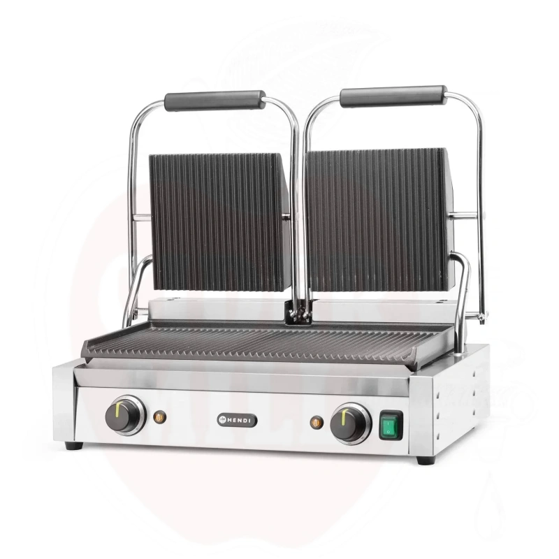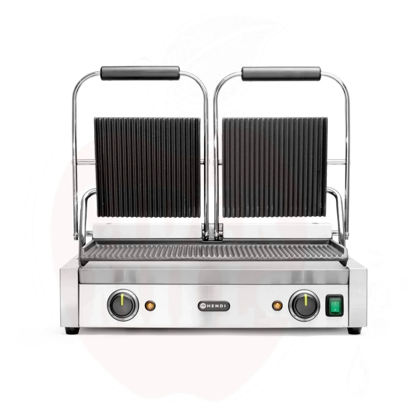 Contact grill - double grill, HENDI, ribbed top and bottom, 230V/3600W, 570x375x(H)216mm