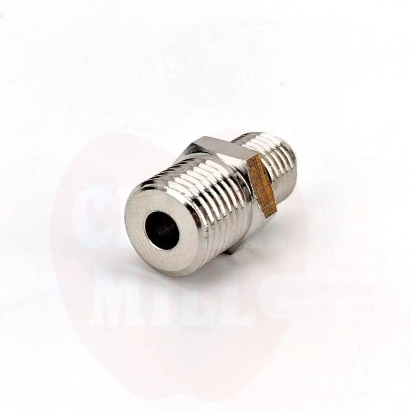 Omadused: Ühel küljel 1/4 NPT keere (ühildub regulaatorite ja gaasijagajatega), teisel küljel 1/4 MFL (välislehtliitmik). Ühildub Duotight sisselükke liitmike või pöördmutriliitmikutega. Välislehtpool on tuntud ka kui 1/4" SAE ja on ühilduv kõigi standardsete SAE liitmikutega. Materjal: Kroomitud messing.